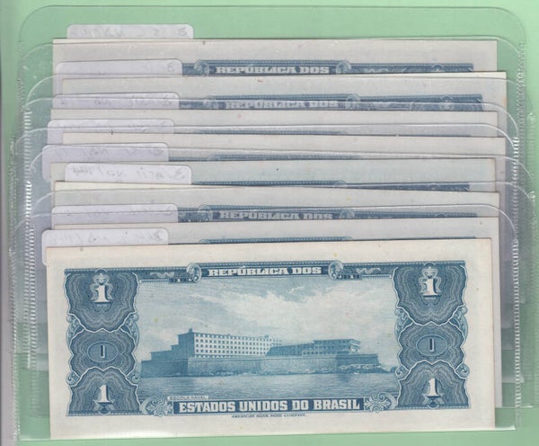 BRASIL - 1944 - C.009 - 1 CRUZEIRO - (P- 132) Hand Signed.8 Notes in Uncirculated Condition. Price is for 1 note.