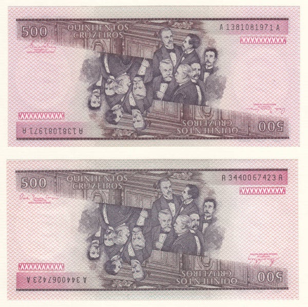 BRASIL - 1981 - C.160 - 500 CRUZEIROS - (P-200a) 2 Notes in Uncirculated condition. Price is for the 2 notes.